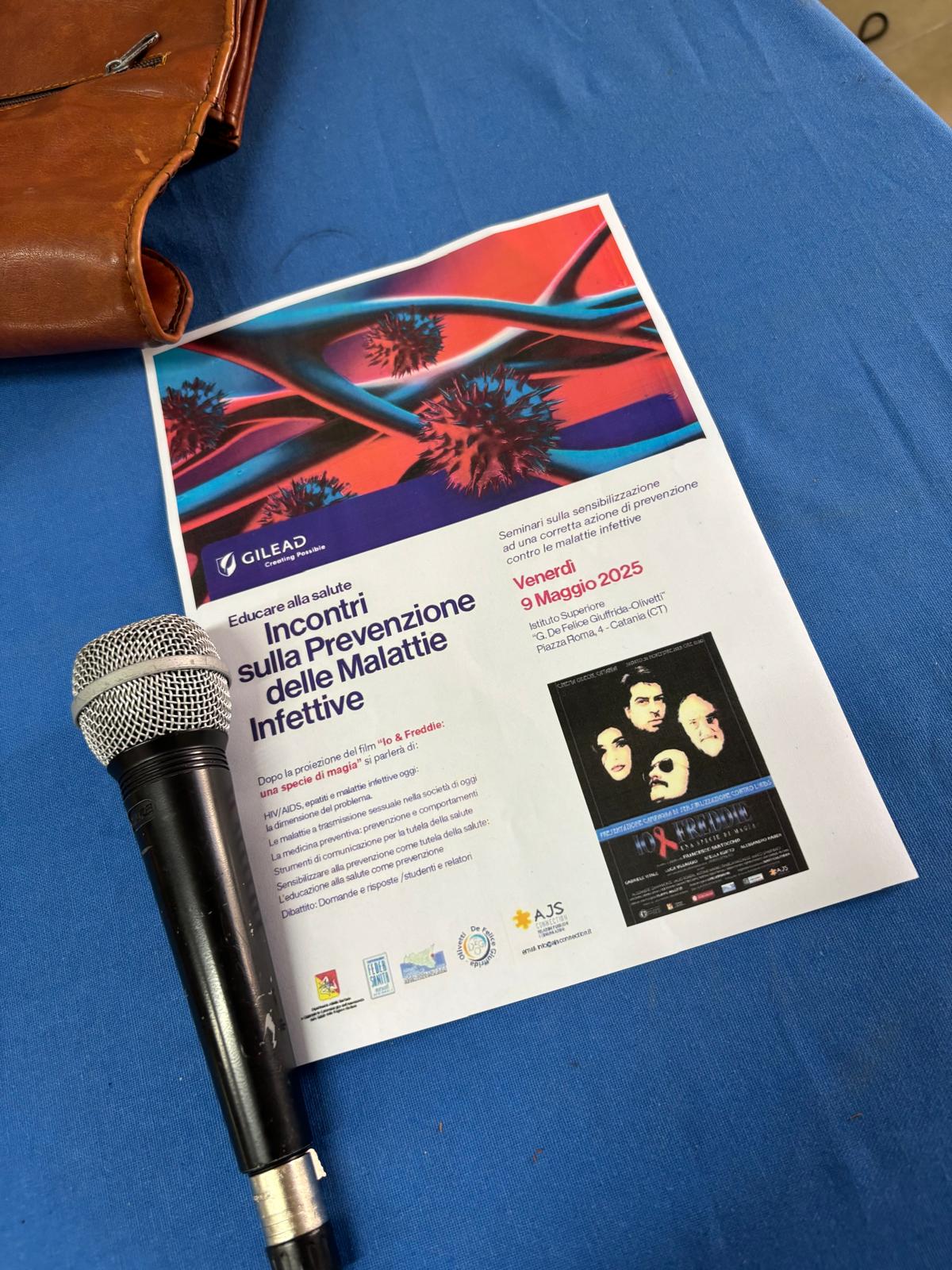 I seminari, organizzati dalla società di Relazioni Pubbliche AJS Connection con il contributo incondizionato di Gilead Sciences, si sono svolti già in tre scuole del catanese, il Centro Provinciale per l’Istruzione degli Adulti CPIA Catania 1 diretto dalla dirigente scolastica Prof.ssa Antonietta Panarello coadiuvata dalla referente salute prof.ssa Simona Guglielmino; l’Istituto I.I.S. “De Felice Giuffrida-Olivetti” diretto dalla dirigente scolastica prof.ssa Anna De Francesco e coadiuvata dalla referente alla salute prof.ssa Agata Barbagallo; l’Istituto I.S.I.S. “Duca Degli Abruzzi” guidata dalla dirigente Prof.ssa Brigida Morsellino e coadiuvata dalla referente alla salute prof.ssa Elisabetta Giustolisi.