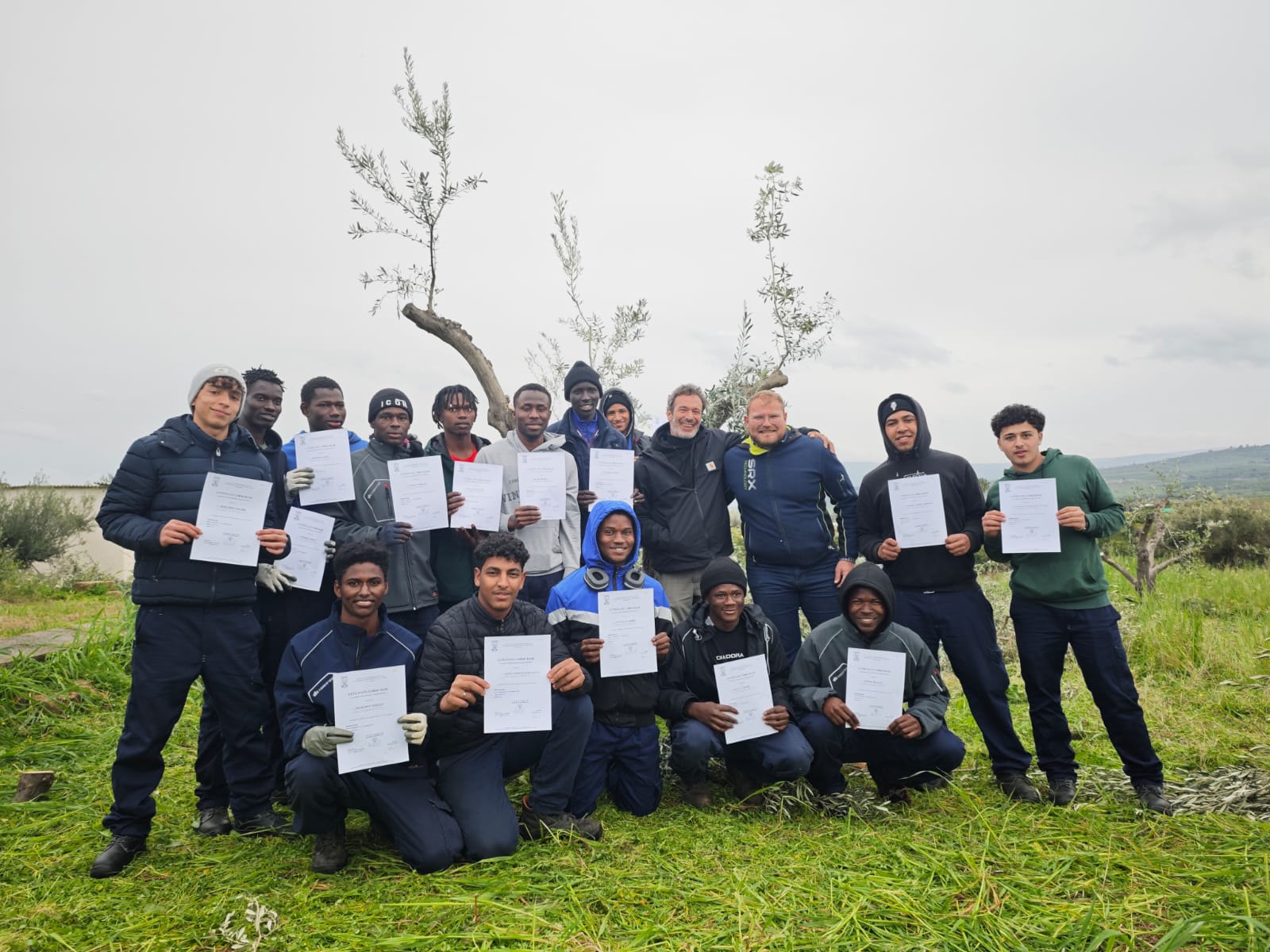 SCORDIA - «La parola “veleno” è chiara a tutti?» «È quello del serpente, no?» «Esatto, ma questo è quello che le piante usano per difendersi da sole». Non è stata solo un’occasione per apprendere alcune tecniche, è stato uno scambio di conoscenze, competenze e anche di traduzioni per semplificare parole e concetti. Si è concluso ieri mattina, in un terreno tolto alla criminalità organizzata in territorio di Scordia, il corso di potatura dell’olivo della scuola “Guido Pannelli” di Spoleto. Destinatari degli incontri di formazione erano i beneficiari dei progetti Sai (Sistema accoglienza e integrazione) per adulti e minori stranieri non accompagnati di Acireale e Catania, accolti nelle strutture gestite dal Consorzio di cooperative sociali Il Nodo.