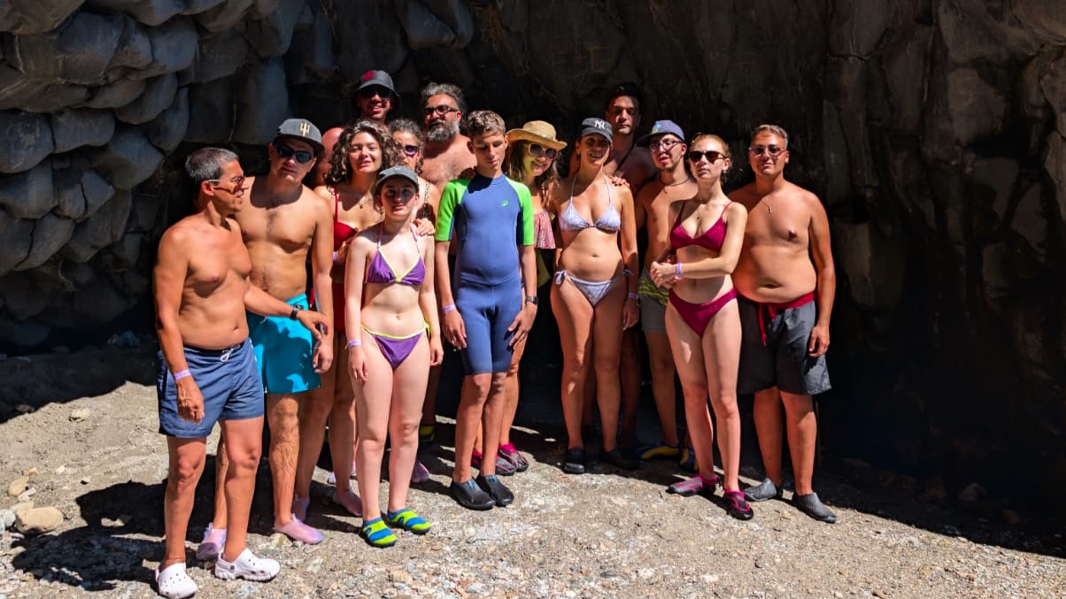 b – Foto di gruppo durante la gita nelle Gole dell'Alcantara, tra Catania e Messina