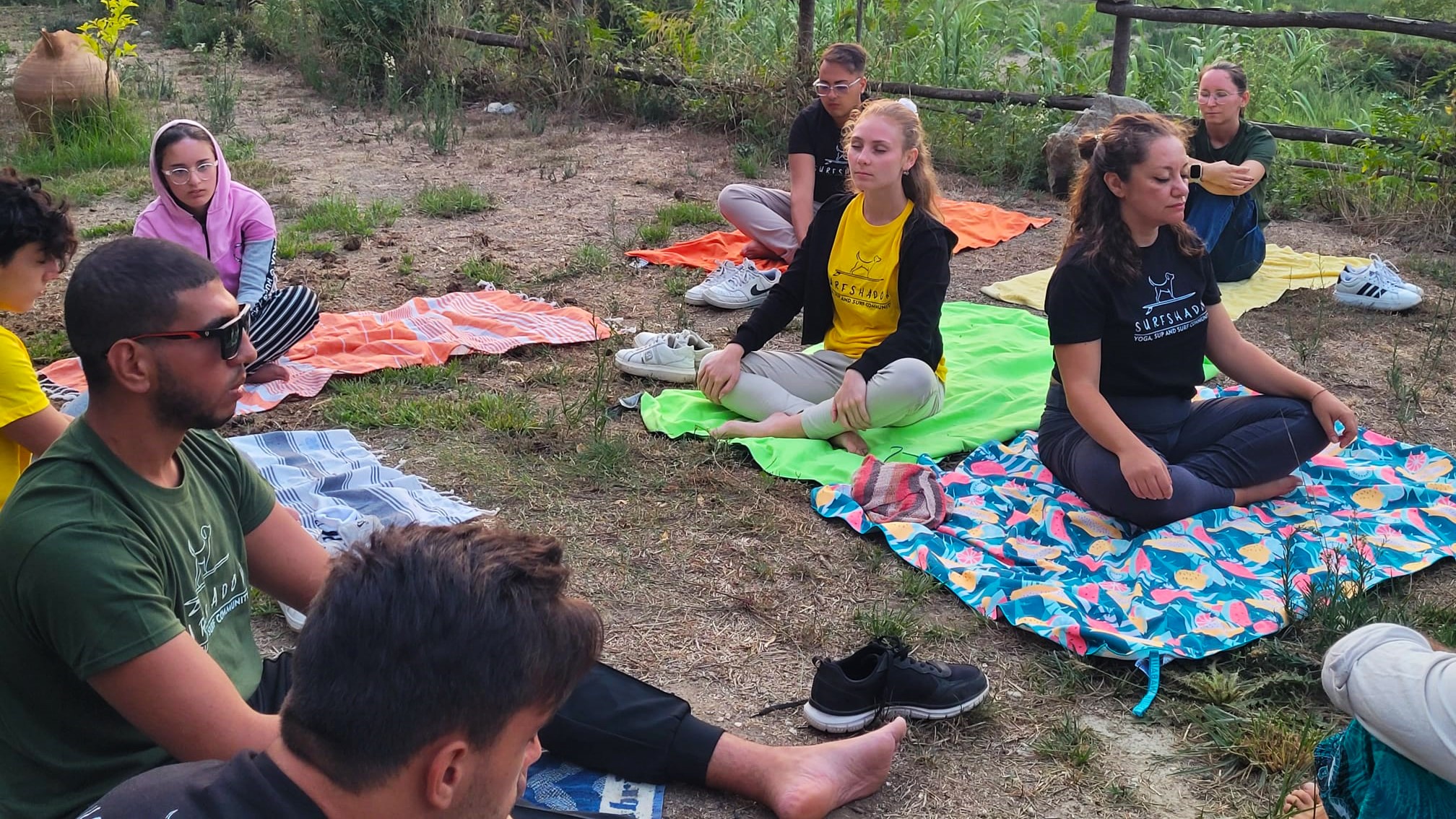 c – Una delle sedute di agro-yoga previste nel campo estivo