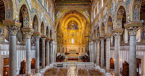 Il complesso monumentale di Monreale – composto da Basilica, Convento, Chiostro e Palazzo Reale – venne edificato nel XII secolo per volere del re normanno Guglielmo II, detto “Il Buono”. Il Duomo è tuttora considerato un capolavoro dell’arte medievale.