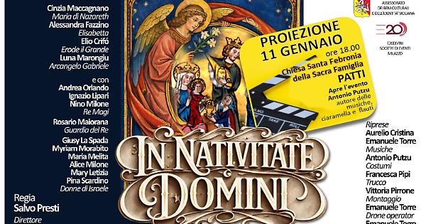 Lo short movie “In Nativitate Domini”, girato nei siti del Parco archeologico su iniziativa della direttrice artistica Anna Ricciardi e realizzato da attori teatrali che ormai da tempo hanno instaurato un rapporto privilegiato con Tindari, sarà proiettato a Patti, nella chiesetta di Santa Febronia, situata all'interno della struttura “La Sacra Famiglia” di proprietà della diocesi.