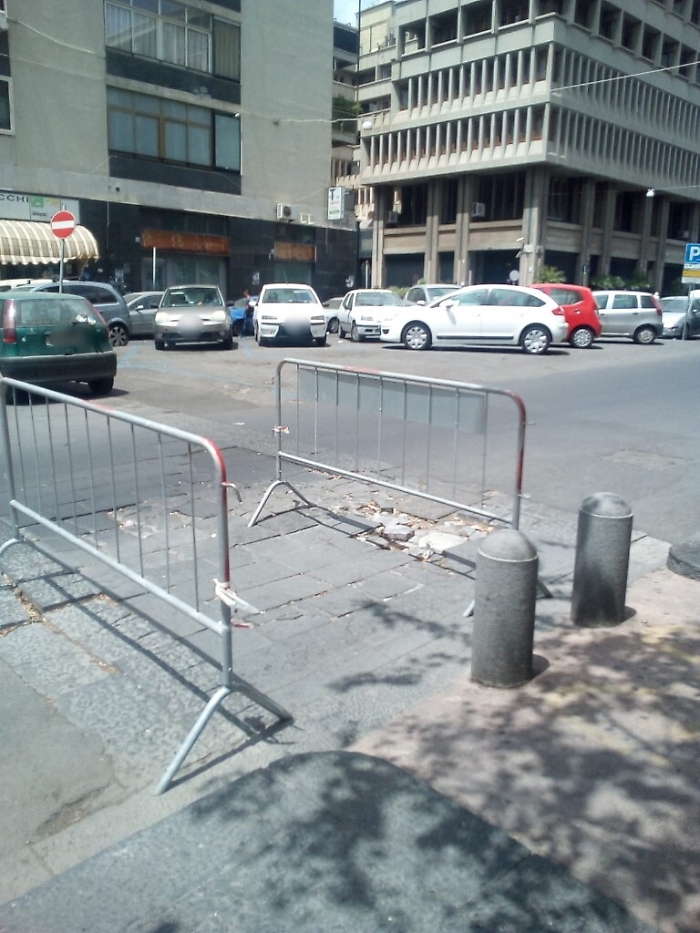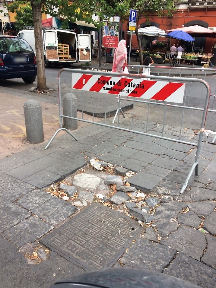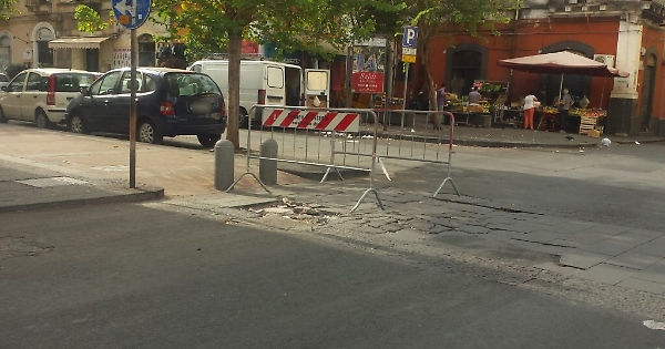 Catania, via Ventimiglia angolo via De Curtis: tombino divelto e transennato da mesi