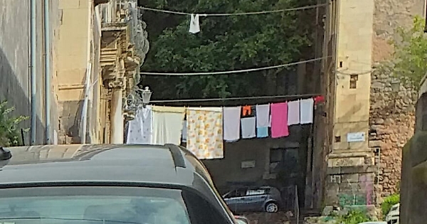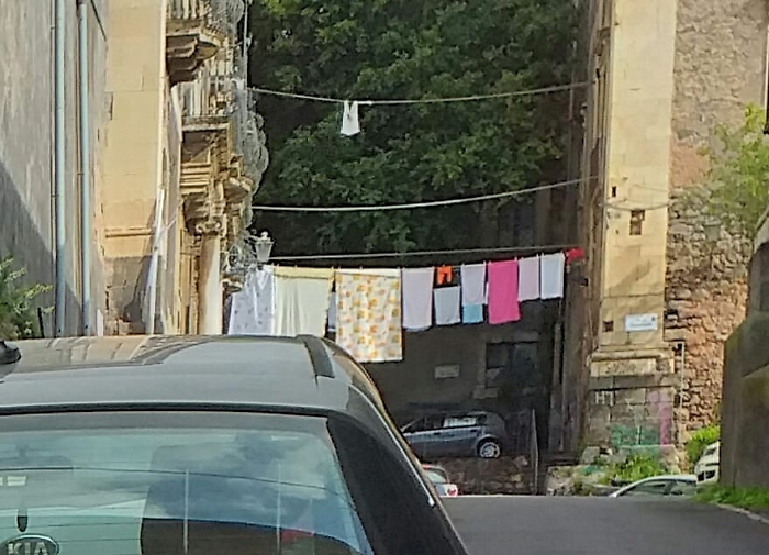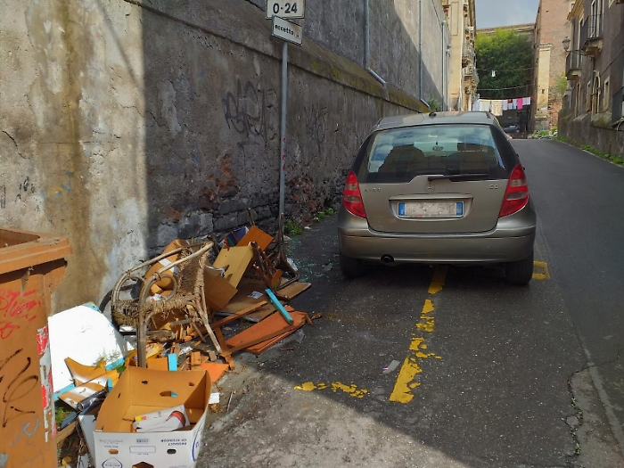 Dispiace, da catanese che ama la propria città, segnalare quanto osservato in pieno centro storico in via Ospizio della Beneficenza, a ridosso di Palazzo Asmundo, zona Via Crociferi; visitata quotidianamente da migliaia di turisti. Da parecchie settimane giace una piccola discarica che alcuno degli addetti ai lavori ritiene opportuno eliminare: è uno spettacolo di panni stesi al sole, poco decoroso per gli ambienti storici circostanti. Si prega le autorità preposte di prendere nota ed intervenire.
