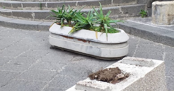 Catania: scempio vandalico delle fioriere in via Crociferi