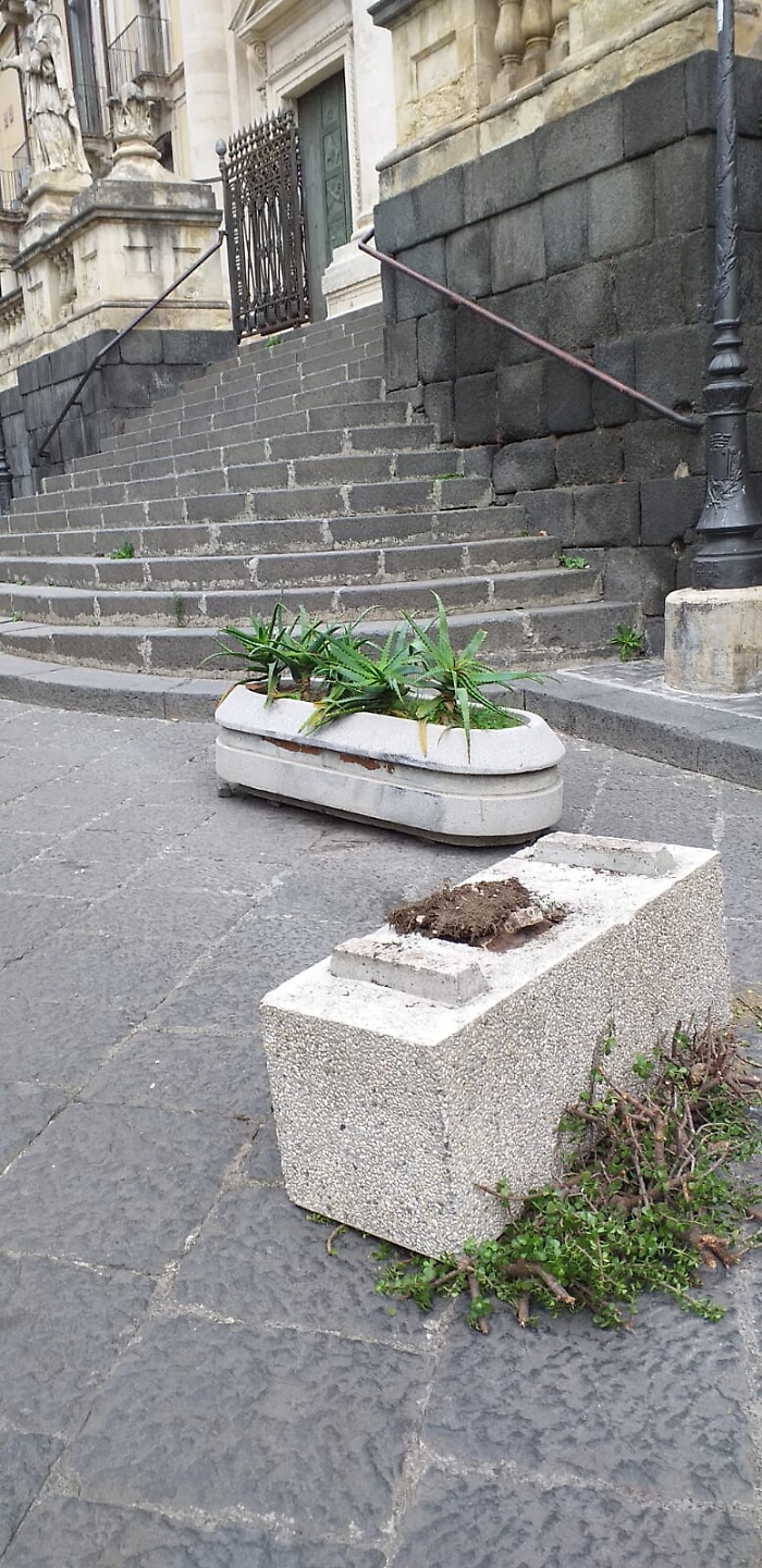 Scempio vandalico delle fioriere in via Crociferi ... Contro Chi e perché?