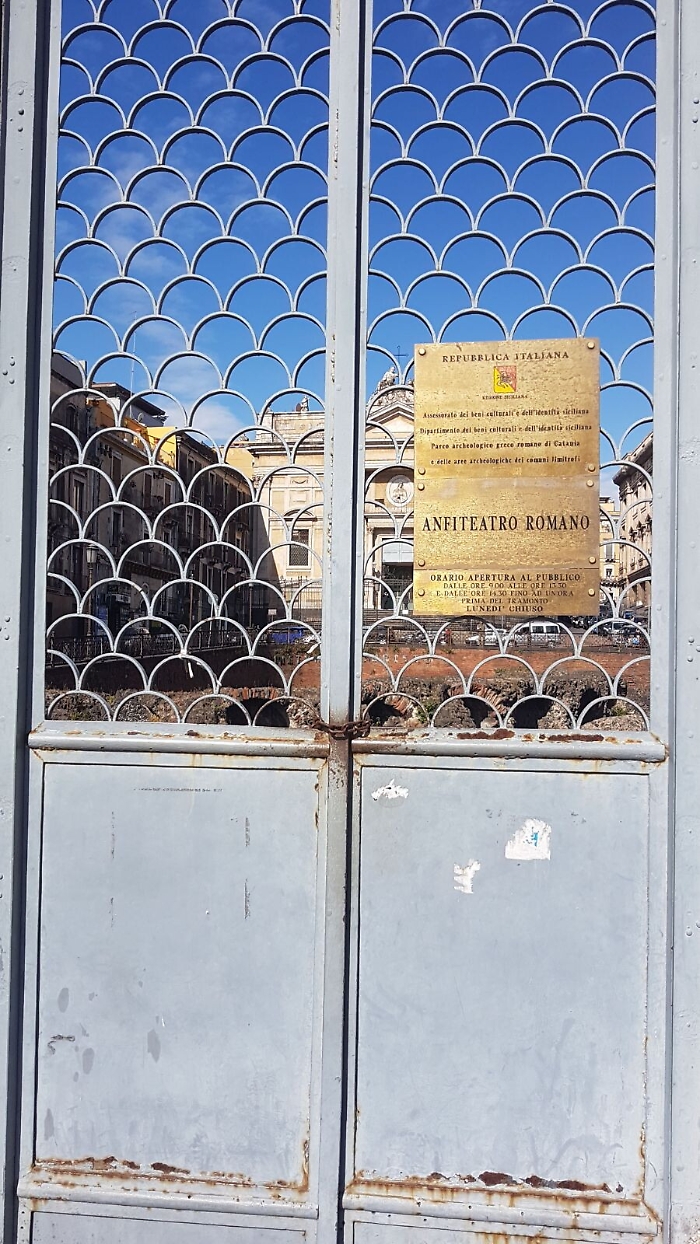 Catania - Anfiteatro romano di piazza Stesicoro.. Apertura ore 9.00: sono le 9.10. Aspettando l'apertura.