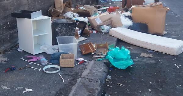 Siamo in Corso dei Mille, di fronte la scuola S. Giovanni Bosco. I rifiuti giacciono da 15 giorni, abbiamo chiamato la ditta Dusty diverse volte con risultato 0. Fate notare al nostro Sindaco che le periferie sono abbandonate, e che dall' insediamento della Dusty la situazione è precipitata.