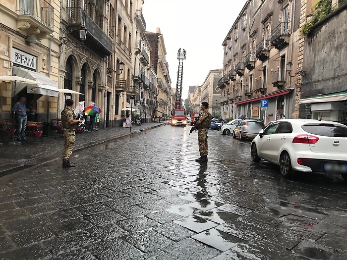 Pattuglie dell'Esercito intervengono nel centro storico di Catania liberando una donna dal suo aggressore e aiutando un uomo in grave stato di alterazione:Catania, 12 ottobre 2018. Nella giornata di oggi le pattuglie appiedate dell'Esercito, impegnate nel centro storico di Catania in attività di presidio nell'ambito dell’operazione "Strade Sicure", sono intervenute, in concorso alle Forze dell'Ordine, per prestare soccorso a cittadini in notevole difficoltà. Nella tarda mattinata, infatti, la pattuglia in servizio sul Corso Indipendenza notava una donna in evidente stato di agitazione che chiedeva aiuto e cercava di divincolarsi dall'uomo che la stava malmenando. I militari, in forza al 62° reggimento fanteria "Sicilia", dopo essersi accertati via radio dell'arrivo di una volante della Polizia di Stato, dispiegavano il dispositivo e bloccavano l'uomo il quale, alla vista dei soldati, cercava di darsi alla fuga lasciando a terra la donna in lacrime. Giunti contestualmente sul posto gli agenti di Polizia, provvedevano a trarre in arresto l'uomo che veniva condotto al Commissariato "Nesima" per i successivi adempimenti. Nel pomeriggio, in Via S. Giuliano, nei Pressi del Teatro S. Giorgio, i militari venivano allertati dai passanti che avevano notato un uomo, in uno stato manifestamente confusionale, il quale, dopo avere scavalcato il balcone del proprio appartamento, si era arrampicato sul tetto dell'edificio. I militari provvedevano a cinturare l'area agevolando l'intervento dei Vigili del Fuoco i quali, precedentemente allertati, erano giunti sul posto e riuscivano a trarre in salvo l'uomo consegnandolo al personale sanitario per le successive cure. La dedizione e l'impegno dei militari contribuisce, anche in condizioni ambientali critiche, ad innalzare il livello di sicurezza della popolazione con la quale i nostri uomini e le nostre donne in divisa hanno saputo instaurare un indissolubile legame di ammirazione e fiducia.