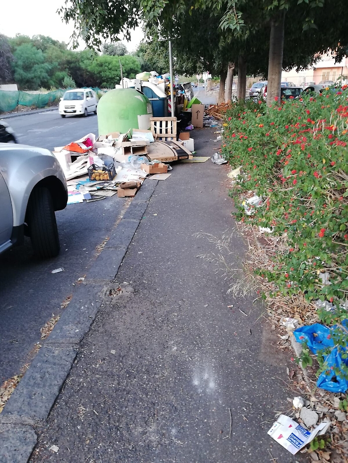 Queste immagini rappresentano il degrado più totale di una delle vie di Catania. Ogni giorno si assiste allo schifo in cui tanta gente per bene è costretta a vivere. Nonostante le molteplici segnalazioni effettuate di continuo, tutt'oggi la situazione non è cambiata: dove sono i controlli che dovrebbero essere effettuati? Perché permettete a tanta gente, che abita nei paesi limitrofi (che dovrebbero rispettare l'indifferenziata), di fermarsi nelle innumerevoli zone della città per scaricare e liberare i cofani delle loro auto nei cassonetti della gente che paga fior di tasse per avere una città decorosa? Dove sono gli operatori che dovrebbero far rispettare le regole di civiltà? Oppure si presenta qualche incaricato del comune a fare dei verbali una sola mattina e poi si ricomincia! Dove stanno i doveri di chi deve amministrare? Eppure noi cittadini abbiamo l'obbligo di pagare! Purtroppo non tutti i cittadini sono degni della propria città, ma questo non deve penalizzare chi lo è! Il Comune di Catania faccia quindi il proprio dovere, attraverso le competenze per le quali "grazie al voto" rivestono tale incarico e paghi chi deve pagare, paghi chi non ha rispetto della dignità altrui. Una zona come Via Teseo o come Via Generale Ameglio (che costeggia l'uscita di centinaia di studenti dal Liceo Lazzaro), seppur delle zone di degno rispetto (come tantissime altre) purtroppo rappresentano lo scempio del territorio catanese che i nostri occhi non vorrebbero vedere: sporcizia, cattivo odore, bottiglie rotte che minacciano la nostra incolumità a ridosso dei marciapiedi, materassi, mobili....insomma in poche parole "Ci vergogniamo di avere una città così sporca" per la quale nessuno prende le redini della situazione e affronti chi o cosa ci sia da affrontare!