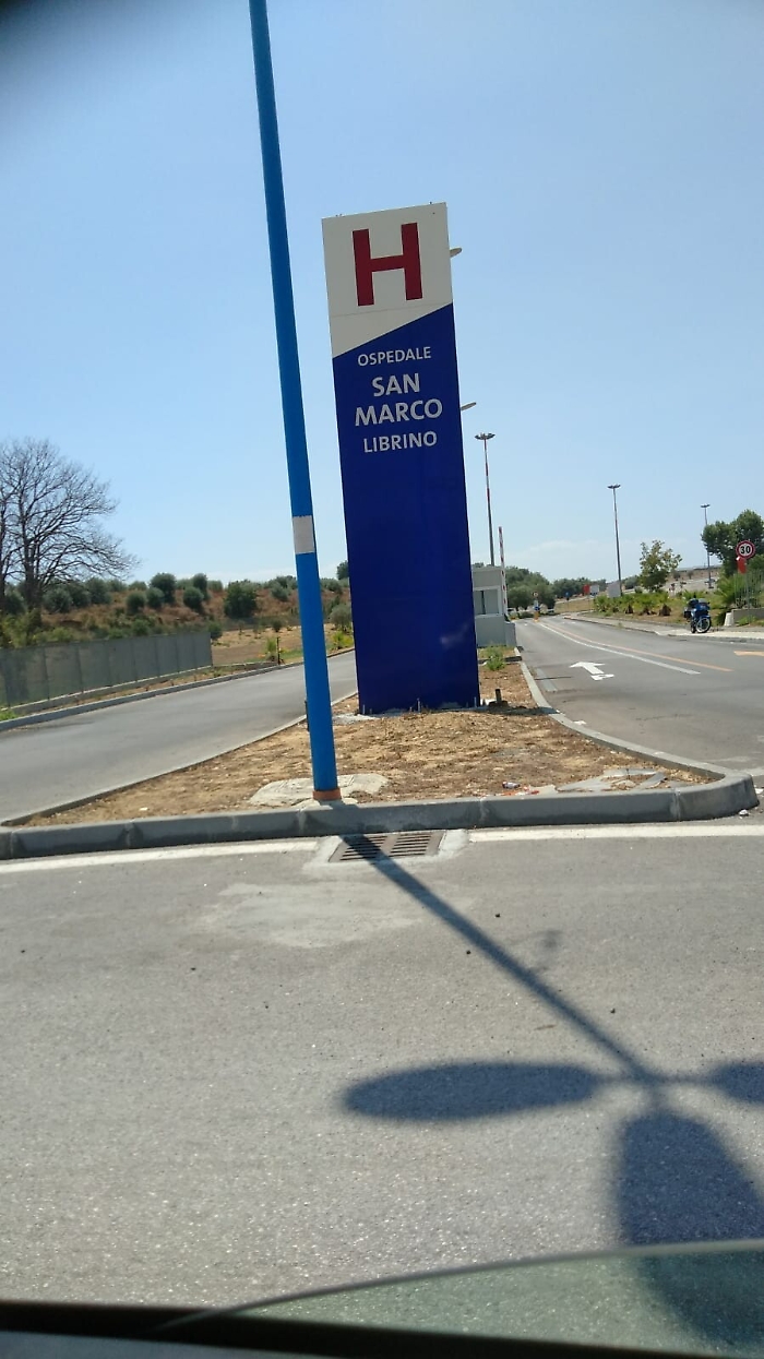 Noto la mancanza di segnaletica stradale che indicano l'ospedale S.Marco. Sia nell'asse attrezzato che da altre strade che conducono ad esso. Per l'ospedale si sono aspettati 20 anni per le segnalazioni quando ne passeranno?