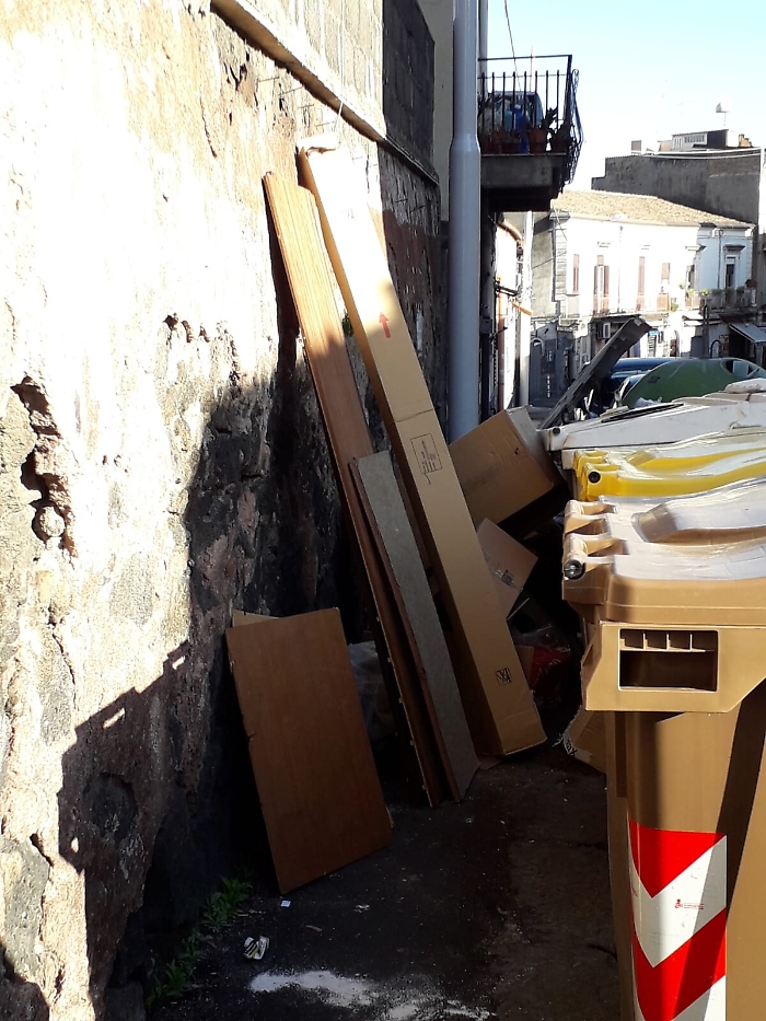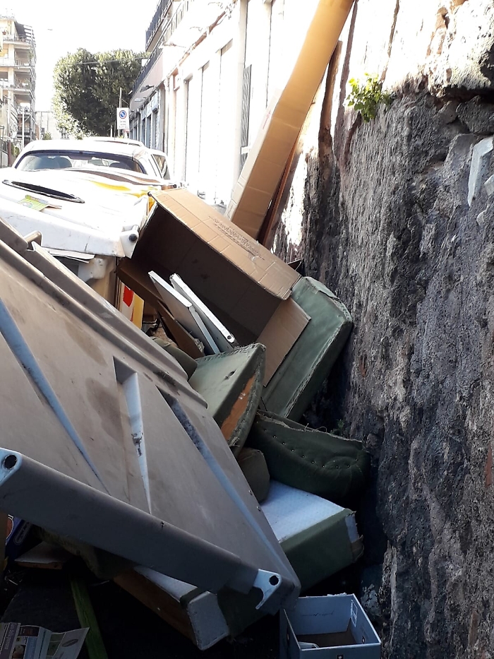 Oggi 17 marzo 2019, via Del Bosco 238 A, 240, 238, da giorni vetro a terra nel marciapiede e nella strada, sotto il marciapiede. Marciapiede pieno di rifiuti ingombranti. I rifiuti ingombranti , tutti i giorni, in questo luogo, invadono, depositati dai cittadini, il marciapiede. Questo marciapiede, dal numero 238 a salire, da molto tempo, non può più essere utilizzato dai cittadini pedoni. Si spera che la Dusty faccia studiare, da esperti questo problema. I cittadini catanesi del quartiere, possono sperare di utilizzare il marciapiede sempre libero?