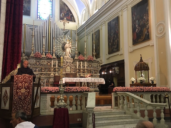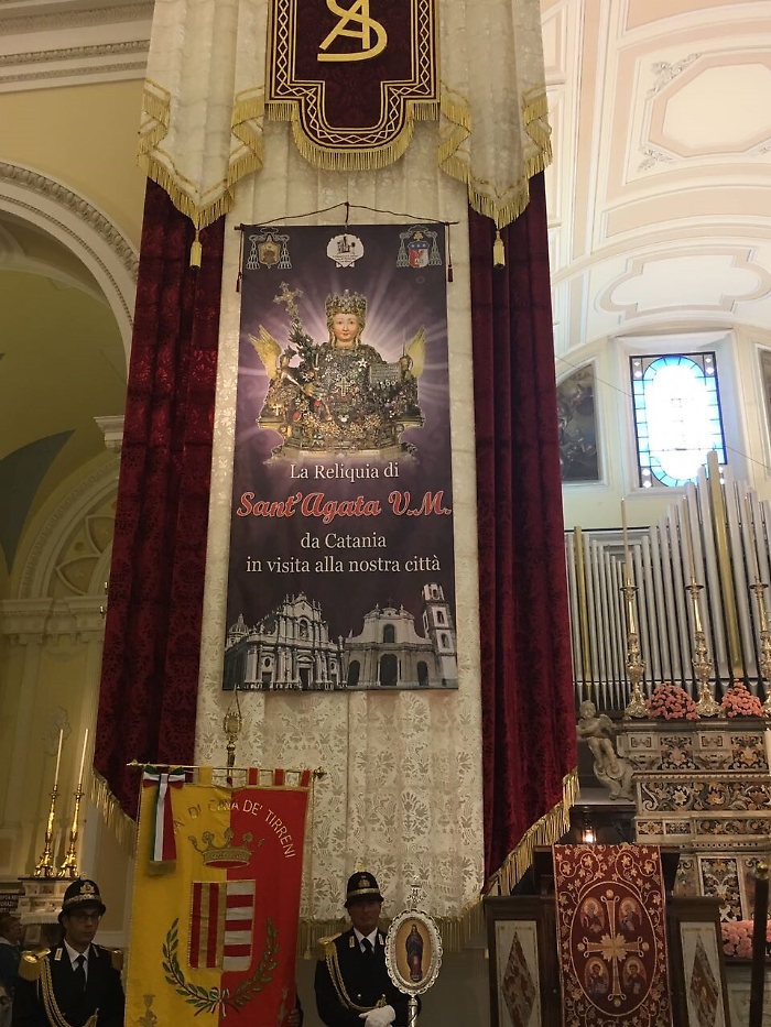 Una delle reliquie di Sant'Agata al Santuario di Cava dè Tirreni accompagnata da Mons. Barbaro Scionti e il Maestro del Fercolo della Santuzza Claudio Consoli...