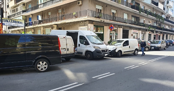 Catania: marciapiede occupato da furgoni camion e auto in viale Ionio