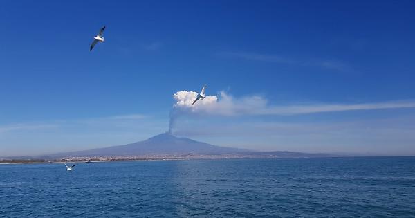 Il mare e l'Etna all'alba dal golfo di Catania