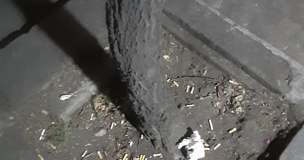 Cicche di sigaretta in un'aiuola. La gente ha capito che rilasciano sostanze tossiche e che il filtro é in plastica? Spazzatura lasciata per strada in via dott. Consoli da alcuni trogloditi