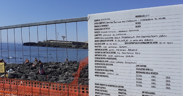 Gran parte della spiaggetta di S. G. Li Cuti transennata da ieri per la costruzione di una passerella per disabili entro il 21.10 2021. È una folle pazzia