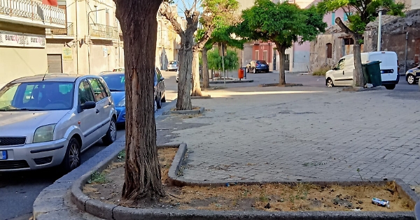 Piazza Genova Adrano, degrado totale: ci sono gli alberi ammalati, le aiuole distrutte, molta sporcizia (qualche lattina qualche bottiglia e escrementi di cani) ma la cosa più grave è che c'è qualche boccettina di metadone; erbacce poi per finire la fontana chiusa senza acqua da anni