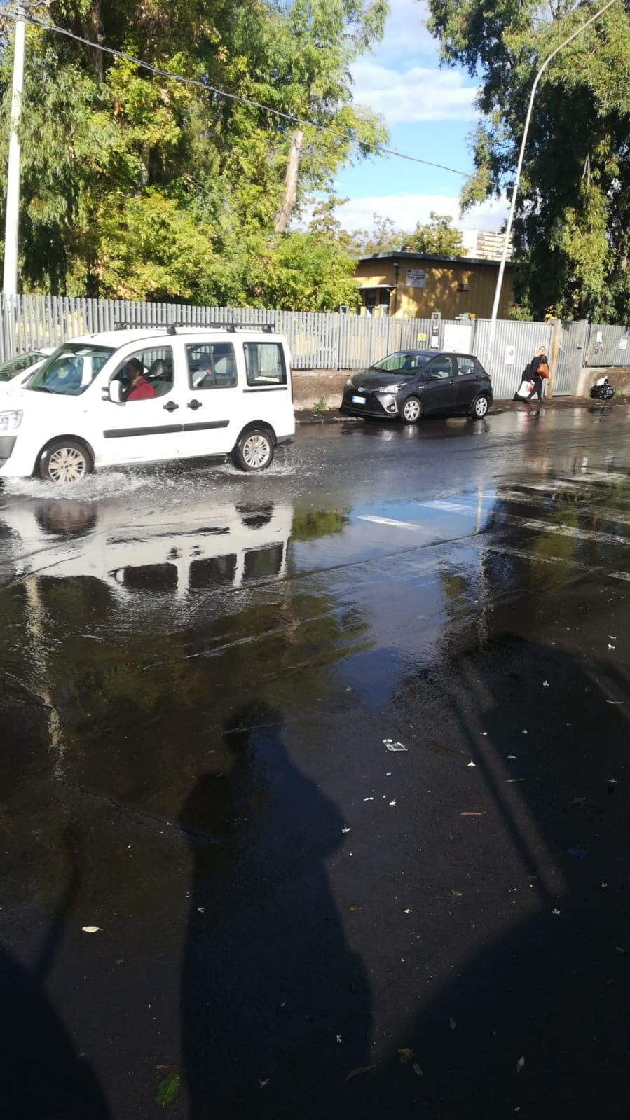 Istituto Calvino, scuola infanzia e primaria, da un mese prigioniero delle perdite idriche. Da diversi giorni la via Pietro Novelli si è trasformata in un fiume. L'acqua sembra arrivare da via Leucatia, fuoriesce dal tombino a fiumi e ha creato un lago proprio davanti la scuola elementare.