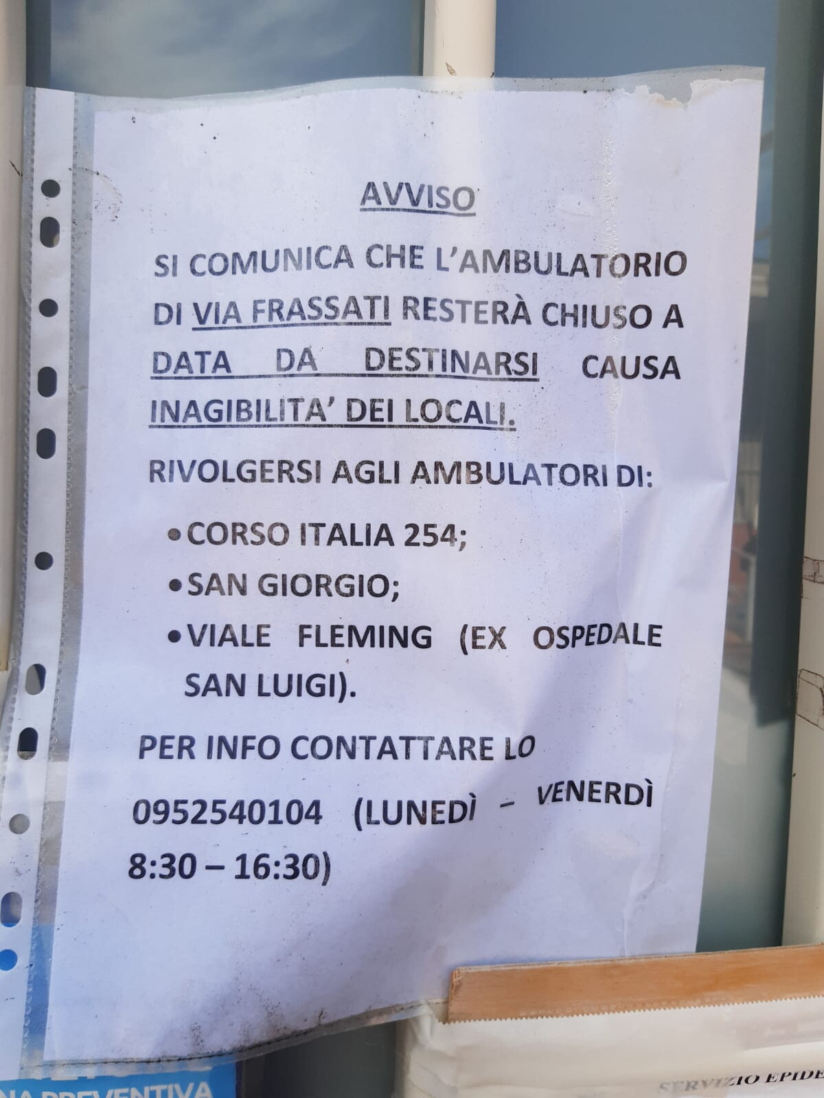 Da oltre un mese chiuso l'ambulatorio di vaccinazioni pediatriche dell'Asp di Catania di via Frassati a Catania, nel quartiere Barriera. Utenti della zona nord della città costretti a disagevoli spostamenti.