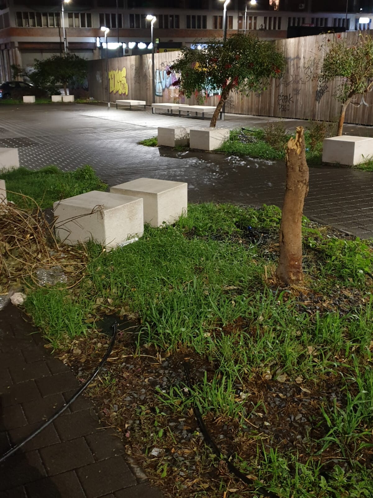Lo scempio in uno degli spazi del corso Sicilia a Catania, spazzatura e un albero spezzato; i senza tetto in questo spazio come dormitorio