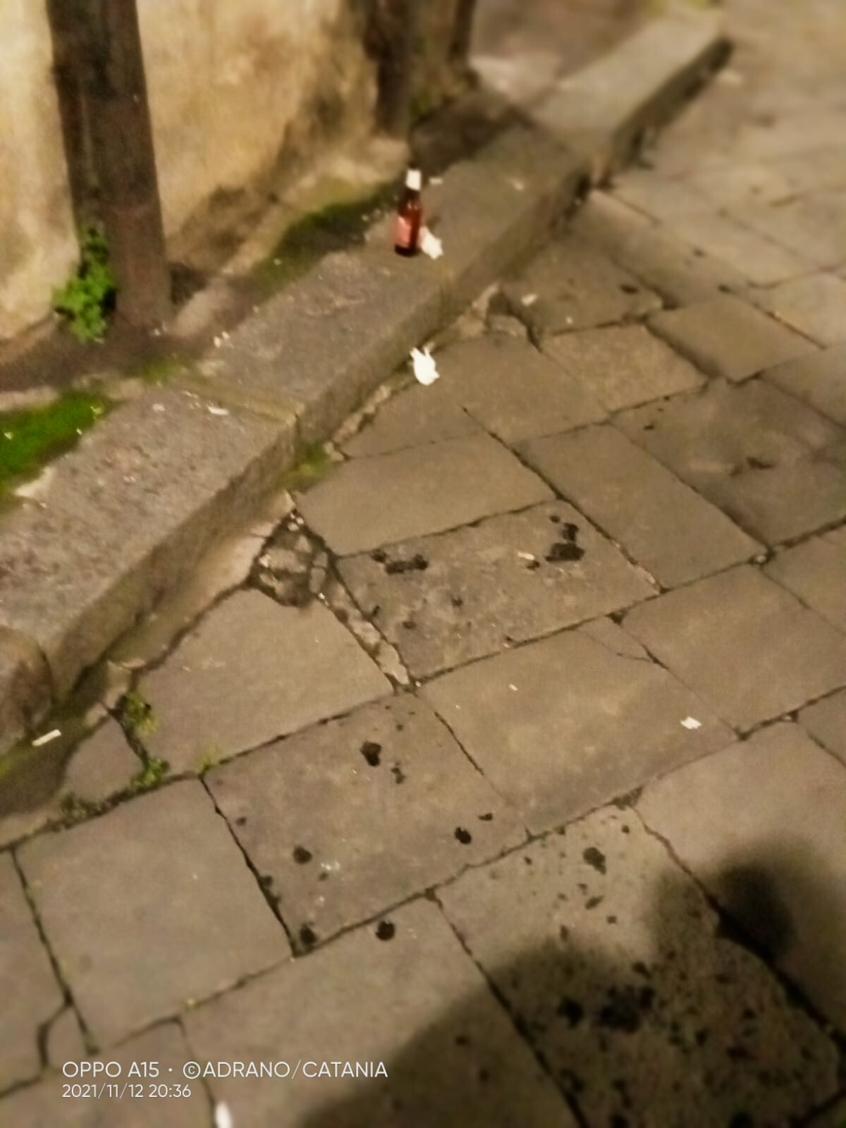 Adrano nelle ore serali nessun controllo da parte delle forze dell'ordine: Polizia di Stato Carabinieri, dei ragazzini bevono e lasciano le bottiglie di birra e quant'altro gettate così a terra non curandosi dell'igiene e del decoro urbano, proprio una vergogna siamo nel centro storico a pochi passi dalla Chiesa della Madonna della Catena.