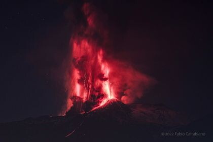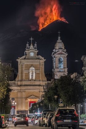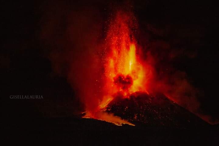 Eruzione Etna. In copertina la foto di Alfio Sgroi mostra "La bella signora" alle prese con il primo parossismo dell'anno, 10/02/2022 da Belpasso (CT). Qua sotto la bellissima foto di Gisella Lauria che ritrae l'Etna nel pieno dell'eruzione