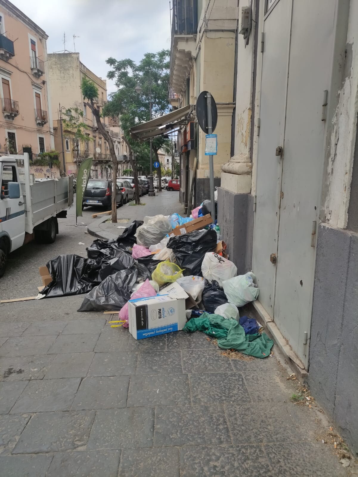 Catania: marciapiede di via Plebiscito diviso in due dall'immondizia