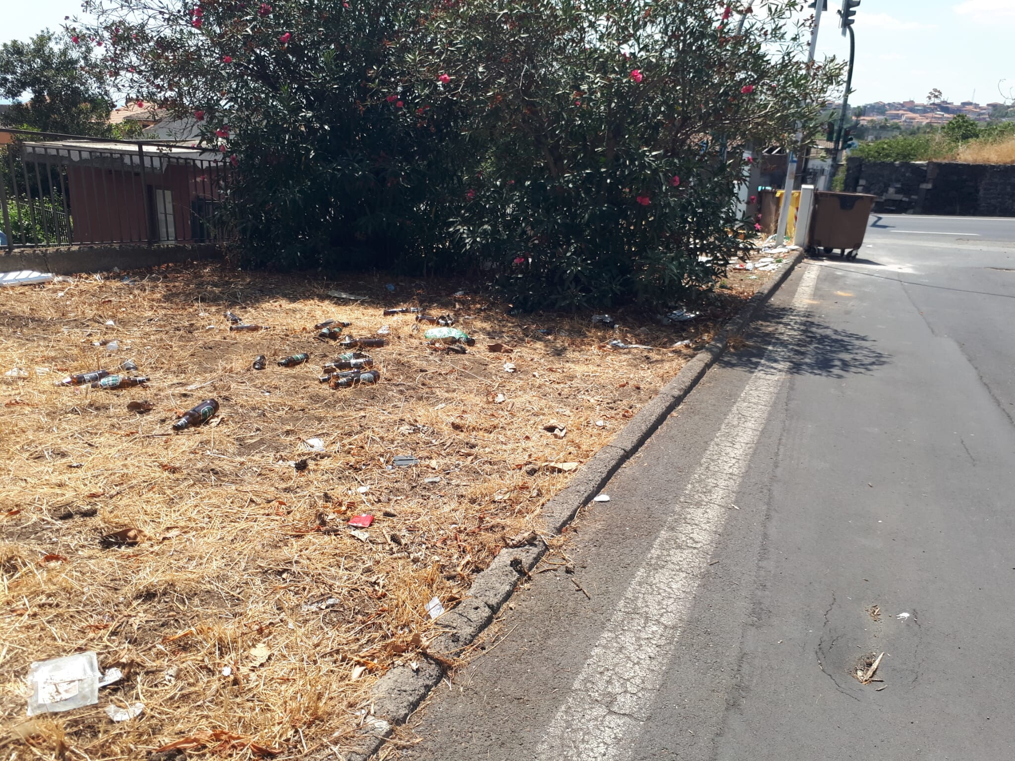 "I giardinieri lasciano le bottiglie (vedasi area verde in Via Franc.Buccheri Boley lato est). A dimostrazione dell'impegno per migliorare la citta' Grazie alla MULTISERVIZI