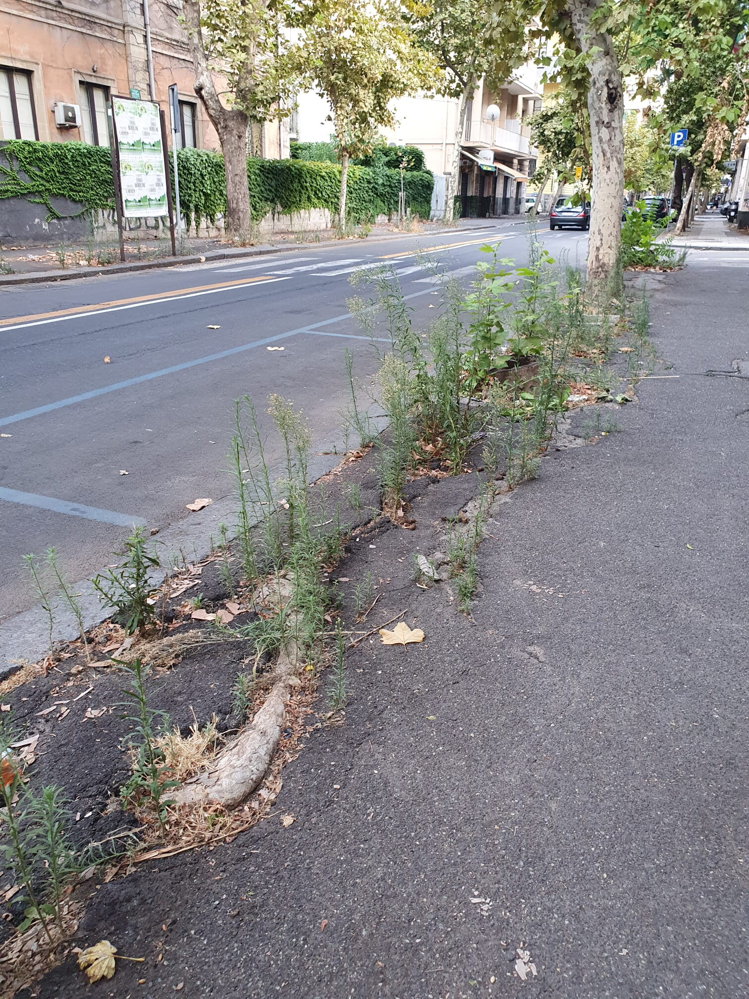 Marciapiedi di via Lago di Nicito a Catania. Dalla foto si vede che non dipende dal catanese maleducato ma da una assenza di manutenzione