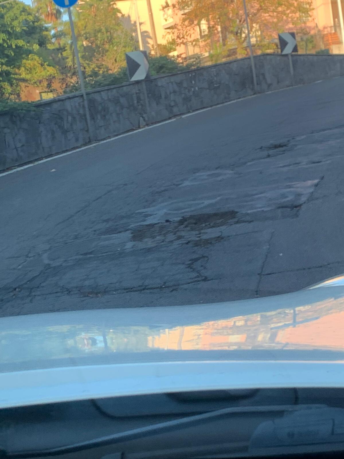 Catania, via Santa Sofia: manto stradale sconnesso e rattoppato