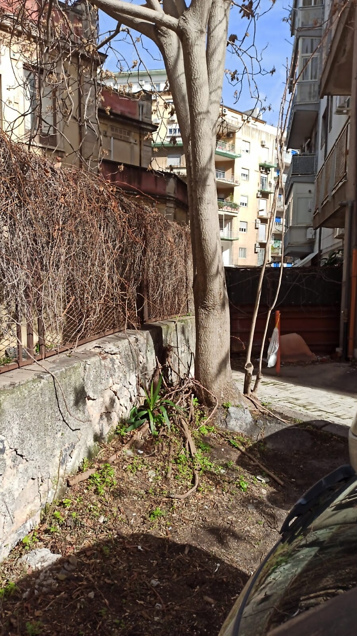 Sta per cedere un muro di confine con l'università di biologia e vari condominii. Oltre ad essere pericoloso per l'illuminazione pubblica. Via Nino Martoglio, Catania