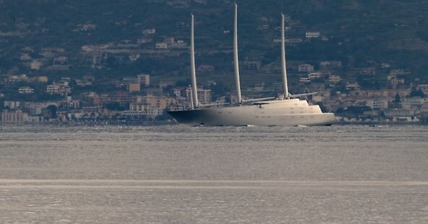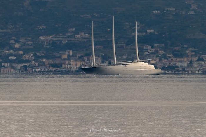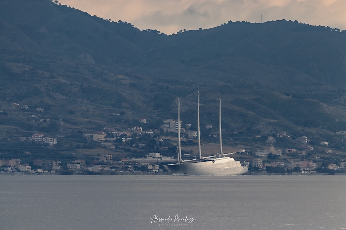 Il "Sailing Yacht A" attraversa le acque dello Stretto di Messina