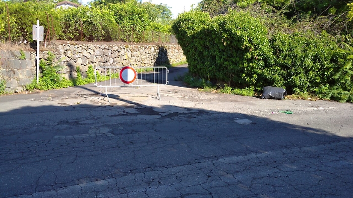 Via Nociazze, adiacente l'Eremo di Sant'Anna. Dopo tanti anni di sversamenti di rifiuti, qualcuno, non si sa chi, senza avvertire i proprietari dei terreni agricoli accedenti detta via, ha chiuso la strada dopo inutili tentativi di impedire il fenomeno. Tra gli altri, sanificazione di tutte le schifezze riversate (risulta edilizia, sanitari, alimentari, plastica, carta, materassi) e costruzione di un muretto con recensione che non ha impedito a dei veri e propri maleducati di continuare a riversare impedendo il passaggio dei veicoli. La chiusura della strada con un rete adiacente l'ingresso della proprietà ha di fatto indotto dei veri e propri criminali ambientali a entrare e ricominciare lo sversamento. Via Nociazze è una strada che collega via Marchesana con la contrada Maugeri sopraelevando l'autostrada. A destra è Comune di Aci Sant'Antonio e a sinistra Valverde. Il muretto è stato costruito non ho idea da chi ma insiste su sedime del Consorzio Autostrade Siciliane. Un rimpallo di responsabilità che è durato anni con prese di posizione e denunce a vari enti e alla stessa giunta da parte di gruppi consiliari di Valverde. Sono uno dei proprietari del terreno. Vivo a Bologna da anni e finora ho assistito nella speranza che le amministrazioni risolvessero una questione che incise sulla salute e l'igiene del territorio. Ora però sono disgustato e mi vergogno come siciliano e come originario di queste terre. In futuro valuterò anche l'intervento di autorità preposte alla repressione di reati.