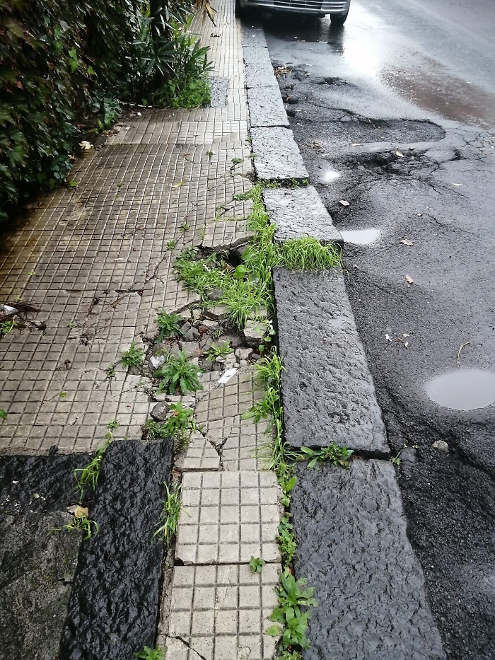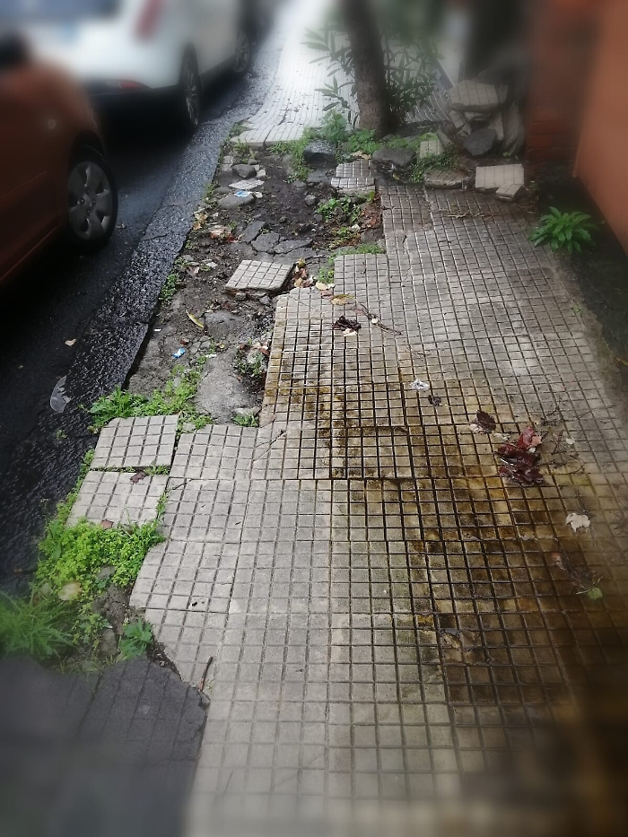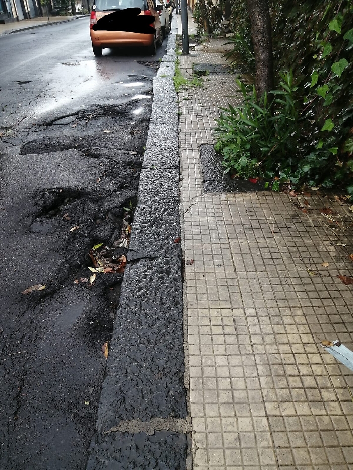 Tremestieri etneo, Via Etnea, marciapiede e strada in condizioni pericolose, così da anni, e il comune non vede