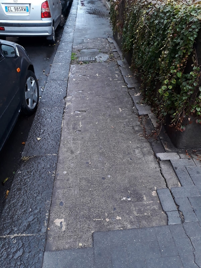 Vorrei segnalare un marciapiede divelto in via Roccaromana, più volte mi è capitato di assistere alla caduta di persone anziane in quanto il suddetto marciapiede è privo di mattonelle e presenta anche una botola in ghisa rialzata che è la causa principale delle cadute; inoltre sempre li davanti vi è una scaletta non illuminata bene dall'illuminazione pubblica...si presenta molto buia e purtroppo nn è sicura per i residenti della zona, molte volte viene utilizzata per disfarsi di portafogli che vengono scippati ai passanti o da persone che utilizzano quella scala buia per i loro bisogni fisici. Spero che tramite la Vs pubblicazione si riesca a fare aggiungere un Lampione in più ed a fare ripristinare anche il marciapiede, e perché no anche una bella disinfestazione con lavaggio della scala visto che da anni via Castromarino, Piazza Fusinato e via G. Torti, scaletta inclusa, non conoscono una disinfestazione ed un lavaggio delle vie sopra citate.