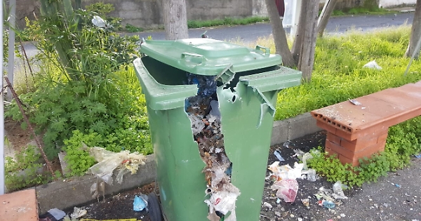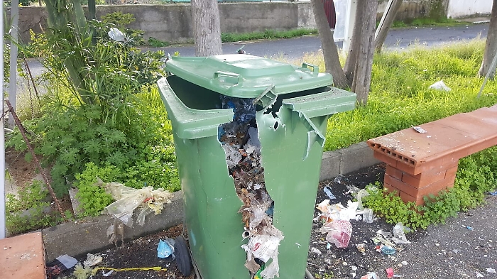 Vaccarizzo (Ct), villaggio Gabbiano Azzurro. Per festeggiare il capodanno fanno "esplodere" il bidone dei rifiuti.