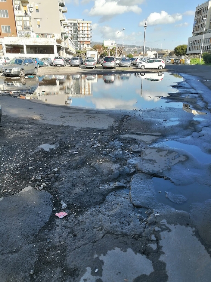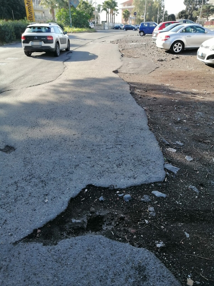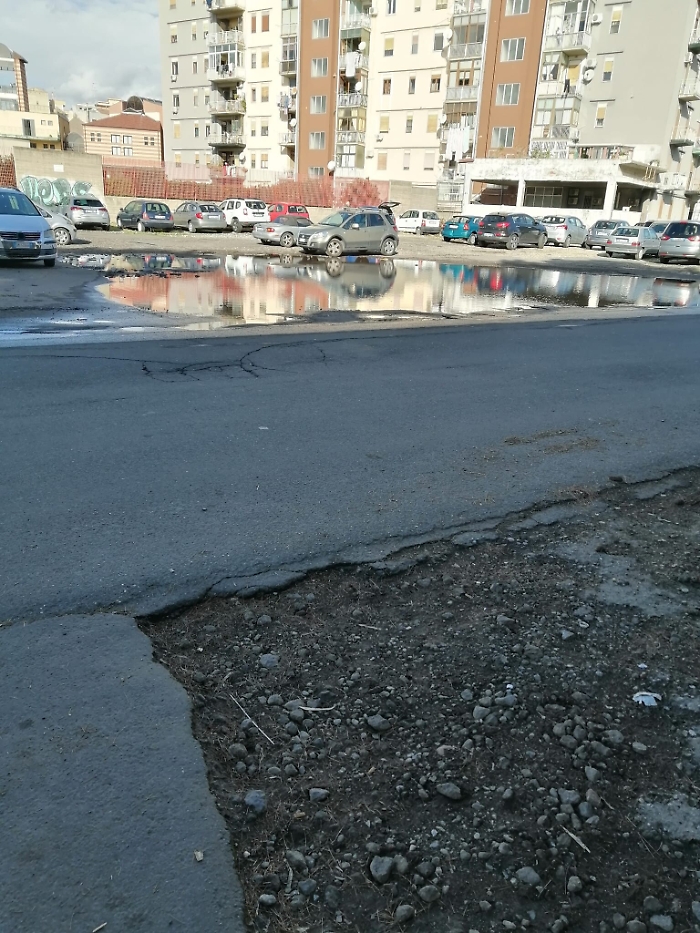 Via Alcide De Gasperi di fronte la Posta.. E' da anni che non viene asfaltata la strada....chi si dovrebbe occupare di tutto questo spettacolo indecoroso?