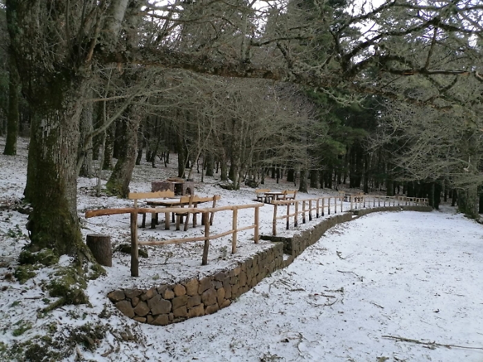 A Salina sulla Fossa é arrivata la neve. Il monte Fossa delle Felci è un monte dell'isola di Salina, alto 962 metri e cima più alta delle isole Eolie.