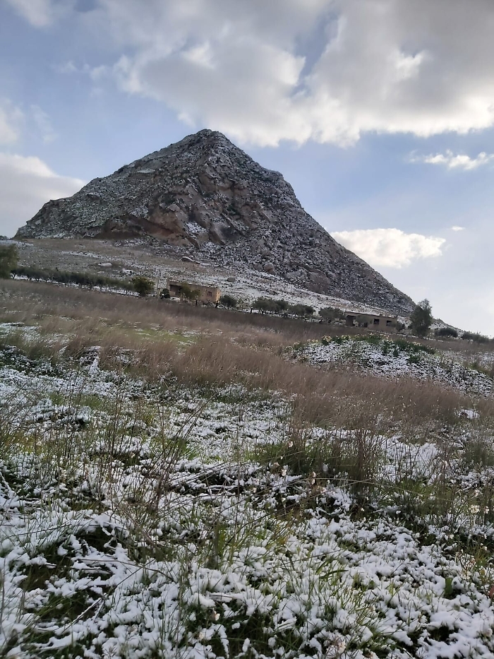 Gelo e neve in Sicilia: anche la "mitica" tomba di Minosse di Monte Guastanella (Agrigento) è sotto la