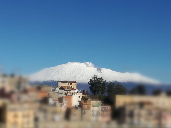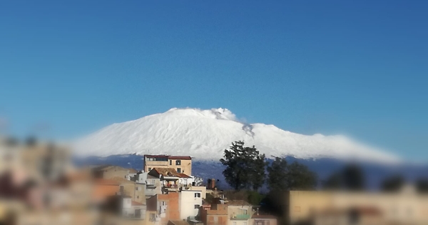 L'Etna innevata e panorama del mare da Centuripe, il paese che visto dall’alto sembra una stella marina