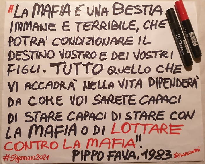 Insomma, come scriveva Pippo Fava "Un giornalista incapace, per vigliaccheria o per calcolo, della verità si porta sulla coscienza tutti i dolori che avrebbe potuto evitare, le sofferenze, le sopraffazioni, le corruzioni, le violenze, che non è stato capace di combattere”. Pippo Fava non scrive più, ma continua a vivere anche dopo il 5 gennaio 1984 attraverso la lotta che non conosce lo stop del piombo mafioso, come insegnano, fra gli altri, anche Peppino Impastato e Beppe Alfano.
