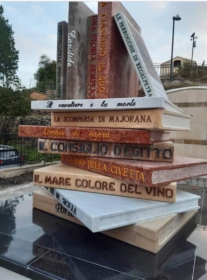 è stato inaugurato a Racalmuto (Ag.) un monumento commemorativo che riproduce alcuni dei libri più famosi di Sciascia ,uno dei più grandi intellettuali siciliani del Novecento, il cui pensiero e le cui parole costituiscono un lascito per sempre.