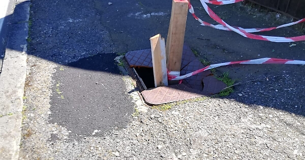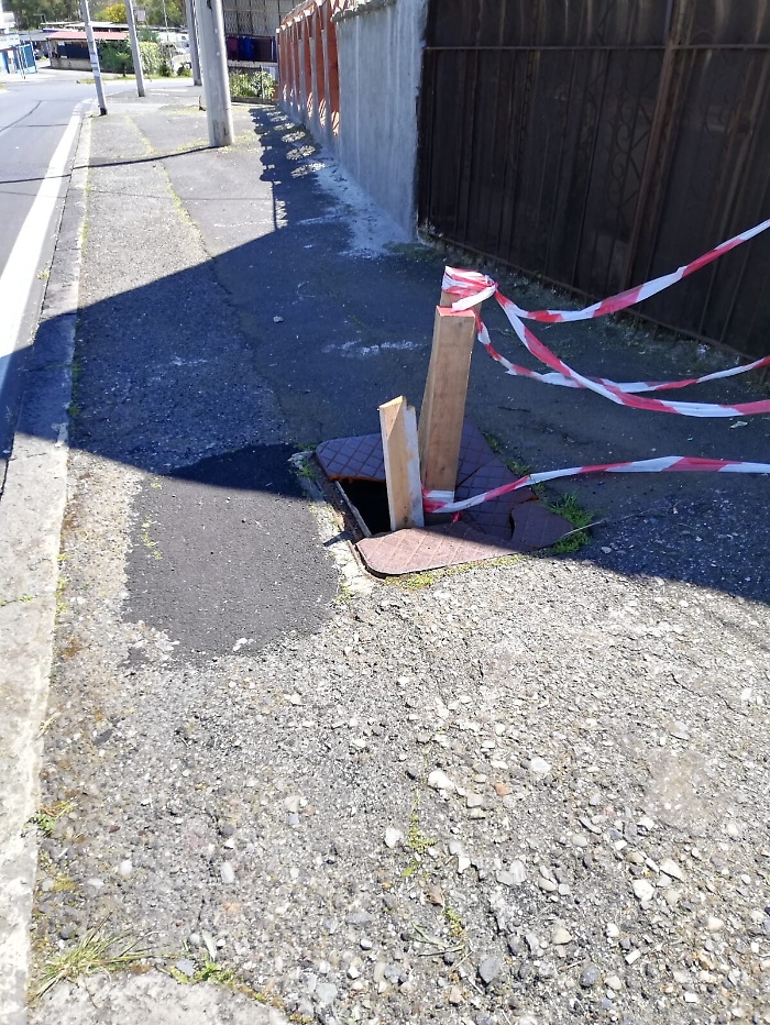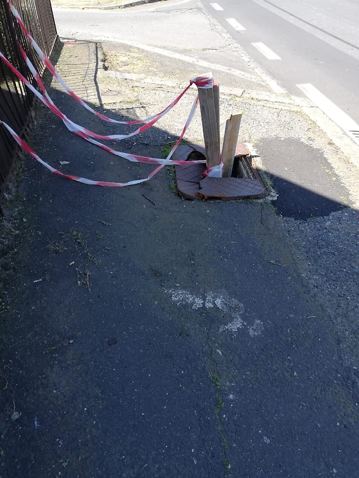 Da una decina di giorni c'è questa botola rotta, al Villaggio S. Agata, viale G. Da Verazzano, vicino l'asilo Pestalozzi