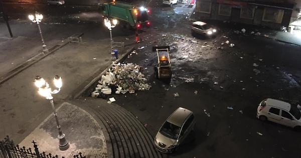 Piazza Carlo Alberto. Sera del 23 dicembre. È così che viene eseguita la differenziazione?