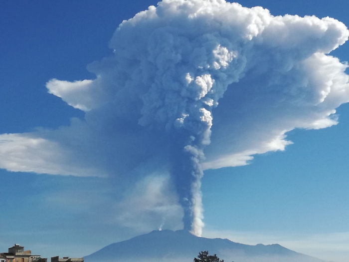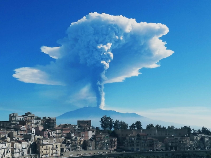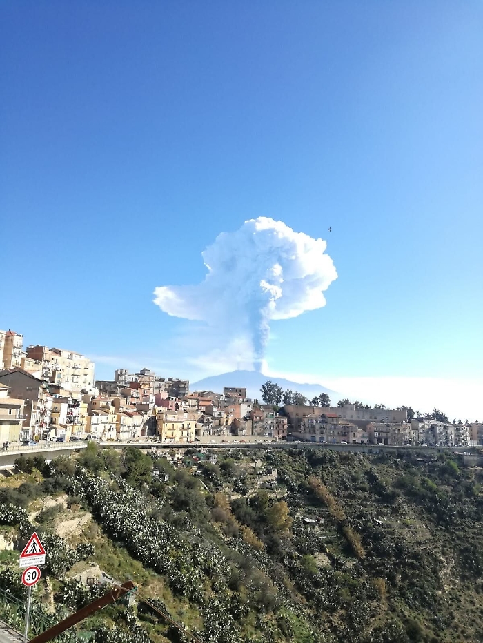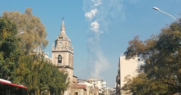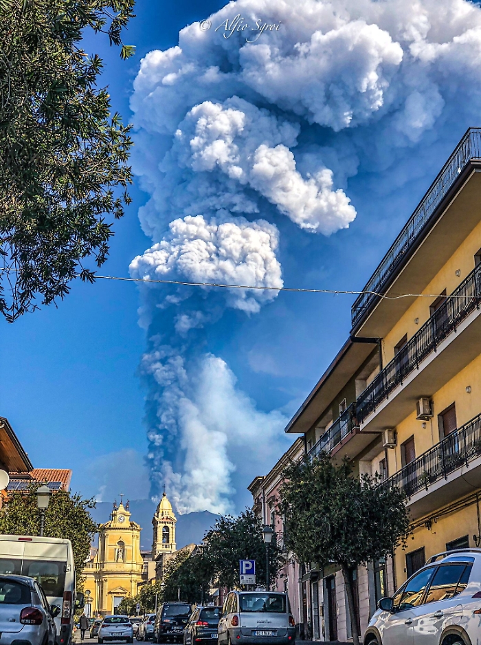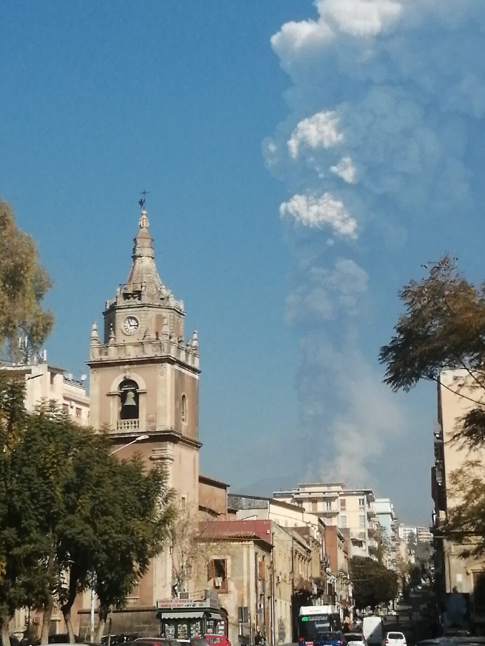 Via Etnea piazza Cavour nono parossismo dell'Etna. Da Centuripe (Rina Debbole), da Augusta e da Belpasso Borrello (Alfio Sgroi)
