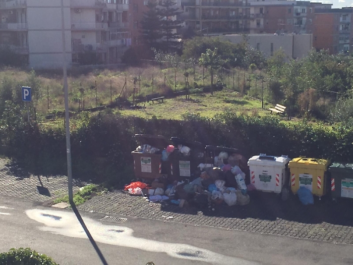 Catania: via S. Catania, cassonetti come panorama