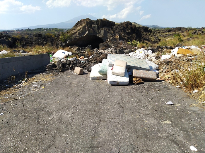 Discarica abusiva, c'è di tutto: amianto, copertoni, vestiti, legna, plastica, materiale edile, spazzatura di casa e anche frutta. Zona villaggio delle Ginestre Belpasso strada comunale Madonna della Sciara precisamente dove c'è la grotta della campana con via Palladio. Ho chiamato i vigili urbani mentre che c'era un furgone che stava scaricando del materiale e non solo ha bruciato il rame con tanto fumo nero e non sono venuti neanche i carabinieri