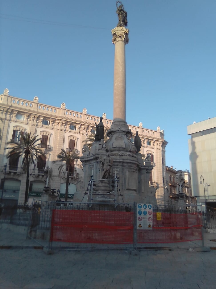 Il monumento dell'Immacolata Concezione è pericolante e il Comune inibisce piazza San Domenico al transito ai pedoni. Lo stabilisce un'ordinanza (la numero 3 del 2020), firmata dal dirigente Dario Di Gangi, che dà mandato alla Reset di montare una recinzione che impedisca alle persone di avvicinarsi all'obelisco. "La chiusura al transito pedonale dell'area circostante il monumento - si legge nel provvedimento emesso dal servizio Mobilità Urbana - ha decorrenza immediata e sino all'eliminazione delle cause di pericolo. La Reset provvederà al posizionamento di idonea recinzione, in modo tale da garantire la pubblica incolumità, verificandone periodicamente il corretto assetto". Ad oggi, da come si può evidenziare dalle foto,