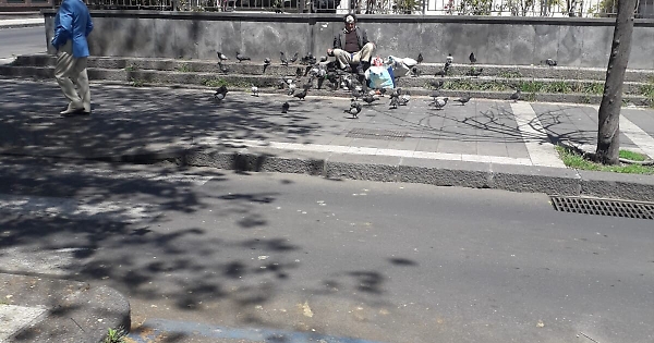 Volevo segnalare il degrado e la sporcizia in Corso Italia davanti la Chiesa Cristo Re, stazionata da un senzatetto che dà da mangiare a centinaia di colombe col pericolo di infezioni da escrementi , il decoro della strada e